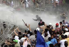 Violence appeared to have ensued when protesters tried to cut through barbed wire barricading them from troops blocking access to the road that leads up to the ministry. Some protesters chanted "peaceful, peaceful" to deter fighting, but the clashes began after troops fired water cannons at protesters and hurled stones to keep them from advancing.